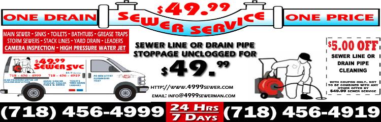 | Copyright © 2023 $49.99 Sewer Service. P.O. Box 671137 Flushing, NY 11367 Phone: (718) 456 4999 (718) 456 4919 |